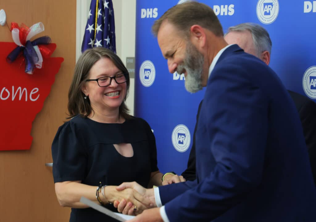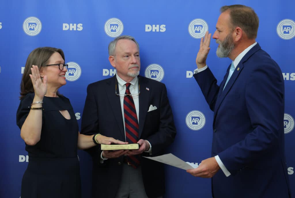 Mann, who previously served as Deputy Secretary for Programs, was named by Gov. Sarah Huckabee Sanders as the next DHS Secretary in June. She has been serving as Secretary Designate since last month when Secretary Kristi Putnam departed DHS to spend more time with family in Kentucky. Mann takes on the official role of Secretary after being sworn in Monday afternoon at DHS headquarters in a ceremony attended by her husband, Doug, and colleagues. The oath of office was administered by Arkansas Supreme Court Associate Justice Cody Hiland.