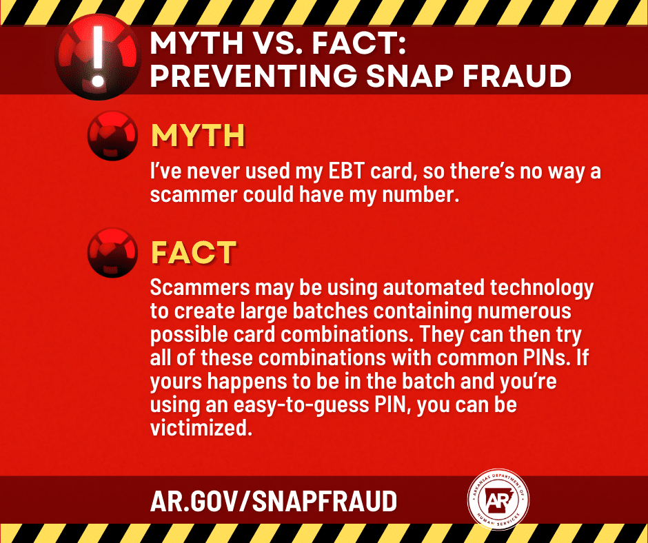 There are scams circulating in Arkansas and other states that aim to electronically steal SNAP benefits.